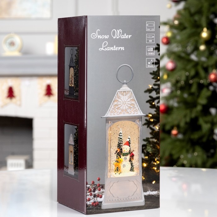 Фигура светодиодная «Новогодняя встреча», 28.4х10.4х10.4 см, музыка, батарейки ААх3 (не в комплекте), USB, свечение тёплое белое