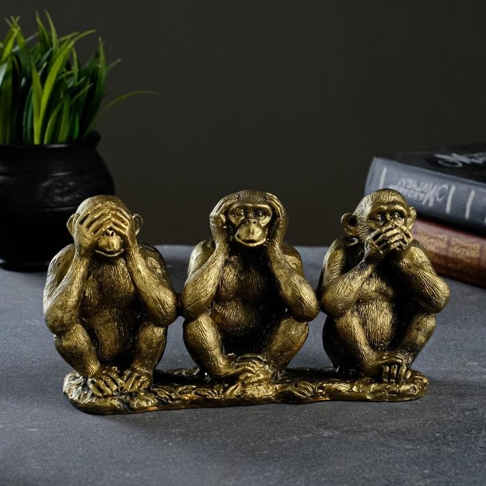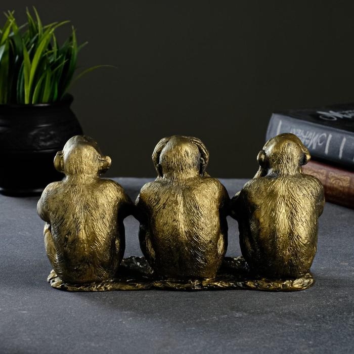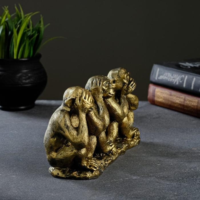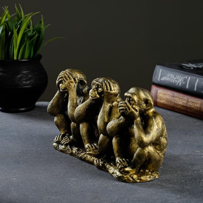 Фигура "Три шимпанзе на ветке" состаренная латунь, 20х12х6см