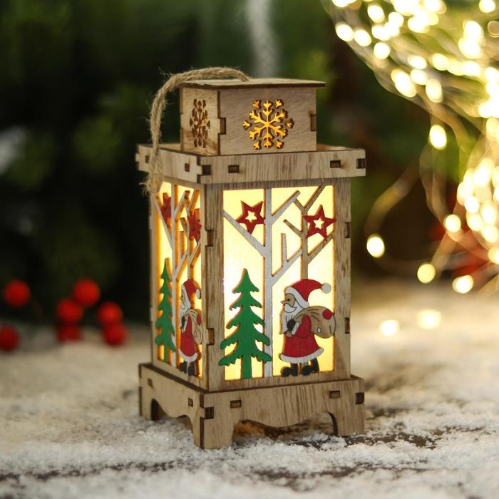 Фигурка новогодняя свет "Дед Мороз под звёздами, в фонарике" 8х16 см