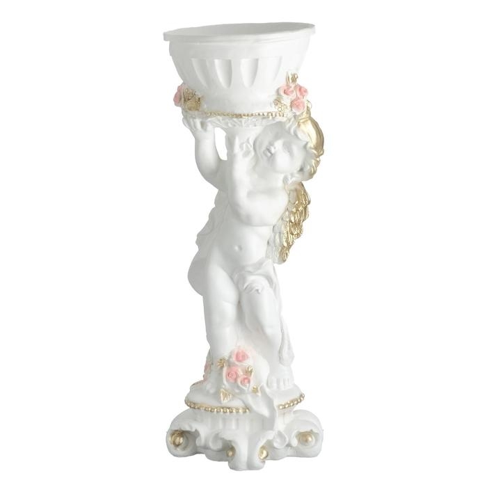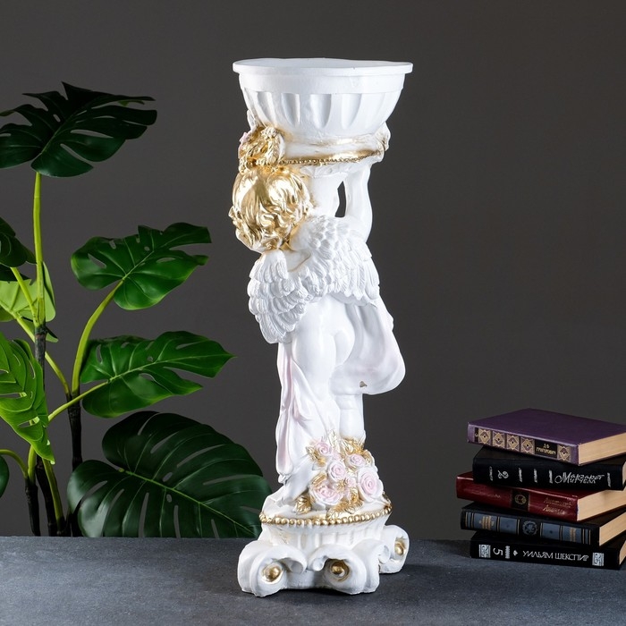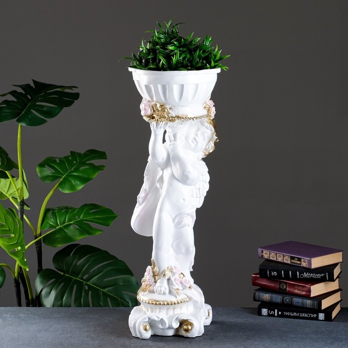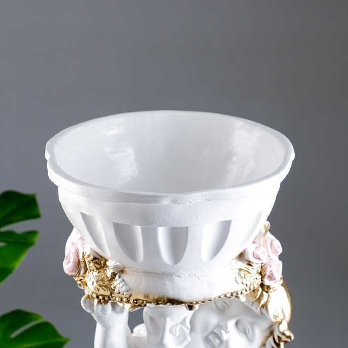 Фигурное кашпо "Ангел с розами", бело-золотой, 1,8 л/ 24х27х70см