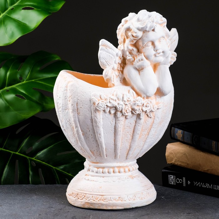 Фигурное кашпо "Ангел в вазе" бежевый, 1,2 л / 20х35х23см