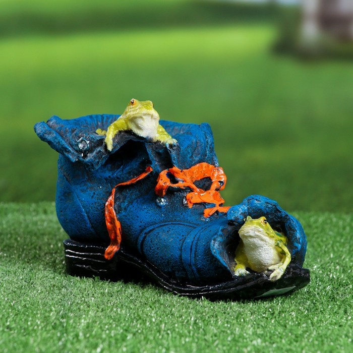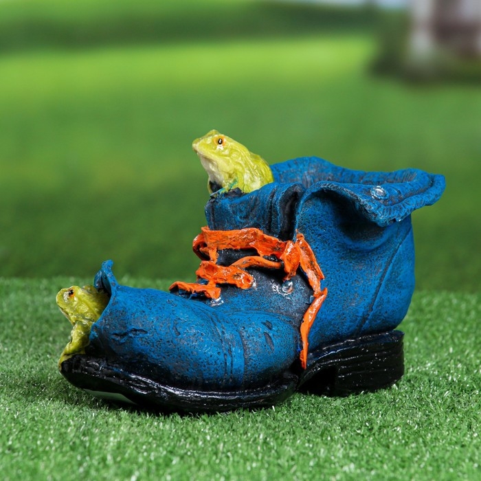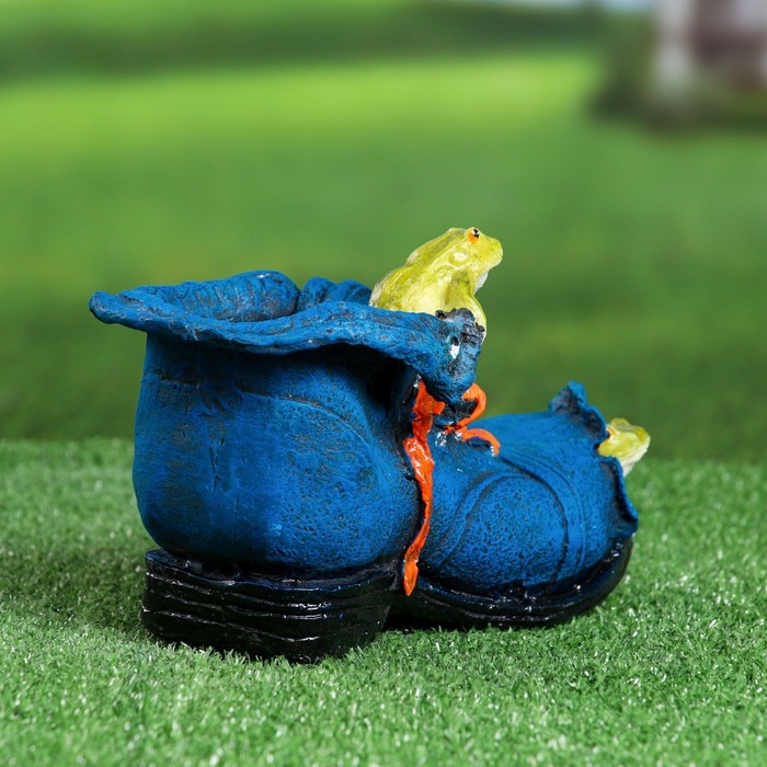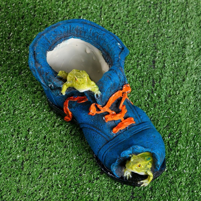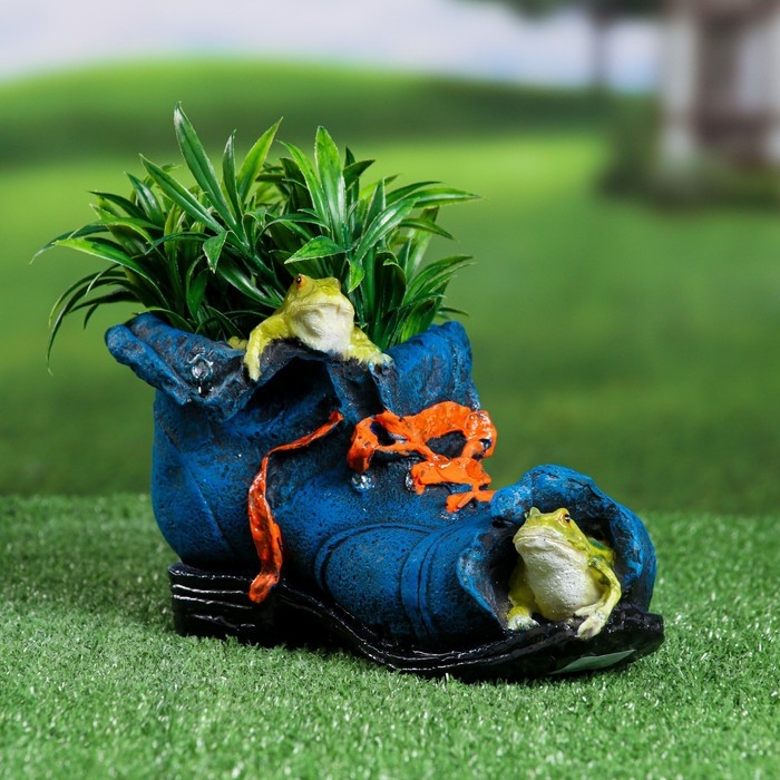 Фигурное кашпо "Ботинок с лягушками" синее, 24х14х15см