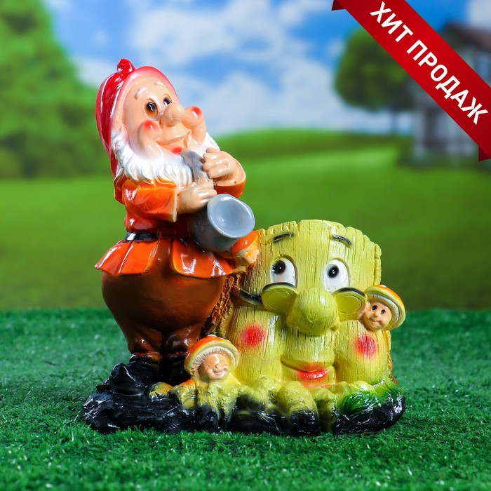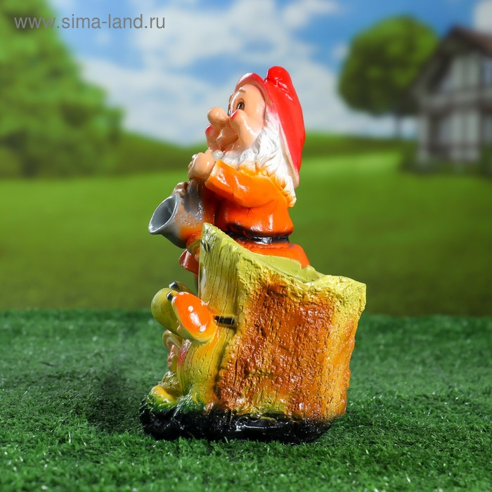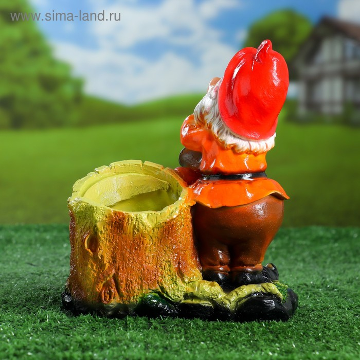 Фигурное кашпо "Гном у пенька №2, 21х18х17 см