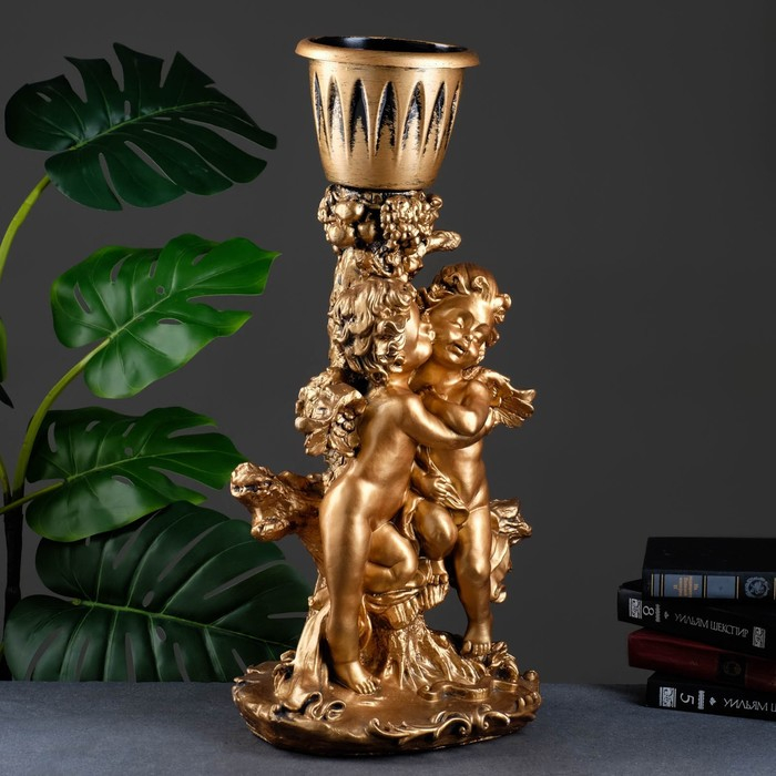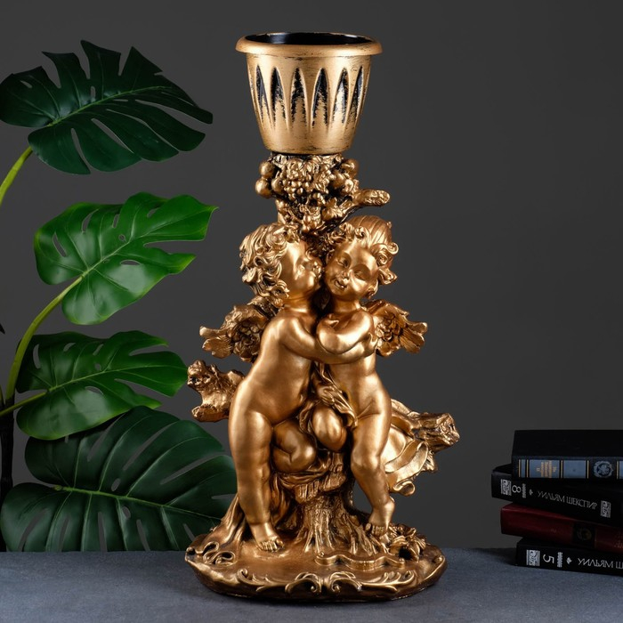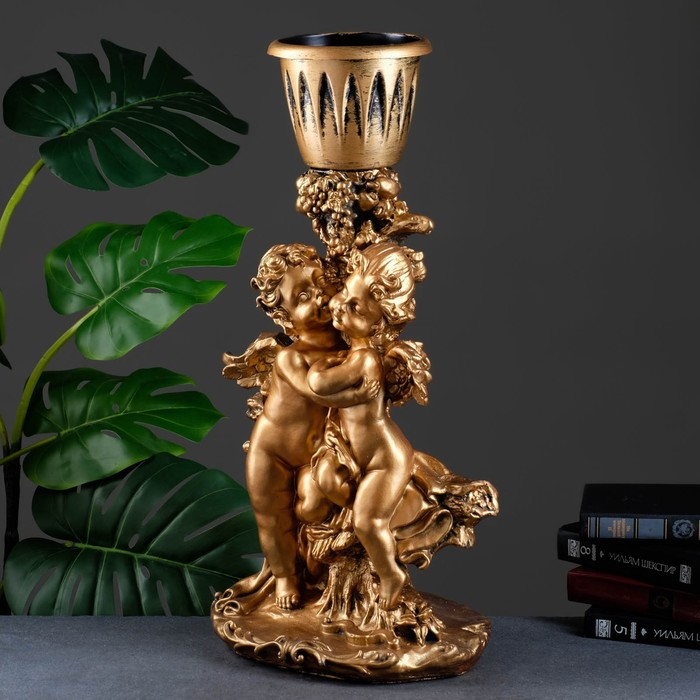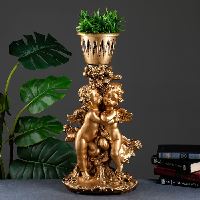Фигурное кашпо "Пара ангелов" бронза 1,2 л / 27х62х30см