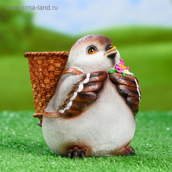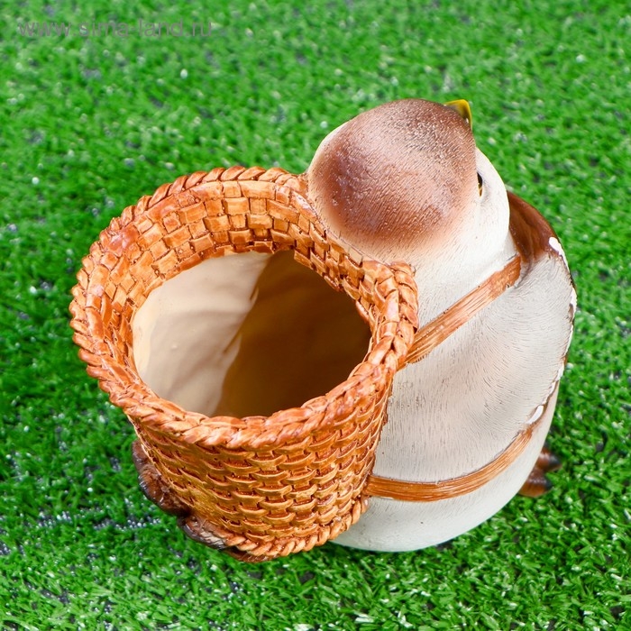 Фигурное кашпо "Воробей с корзинкой на спине" 16х12х15см