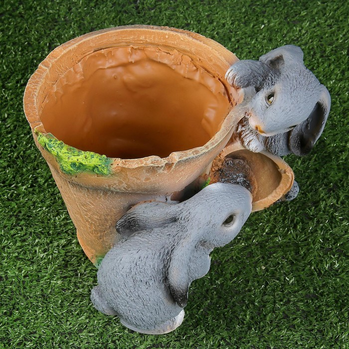 Фигурное кашпо "Зайцы у горшочка" 17см