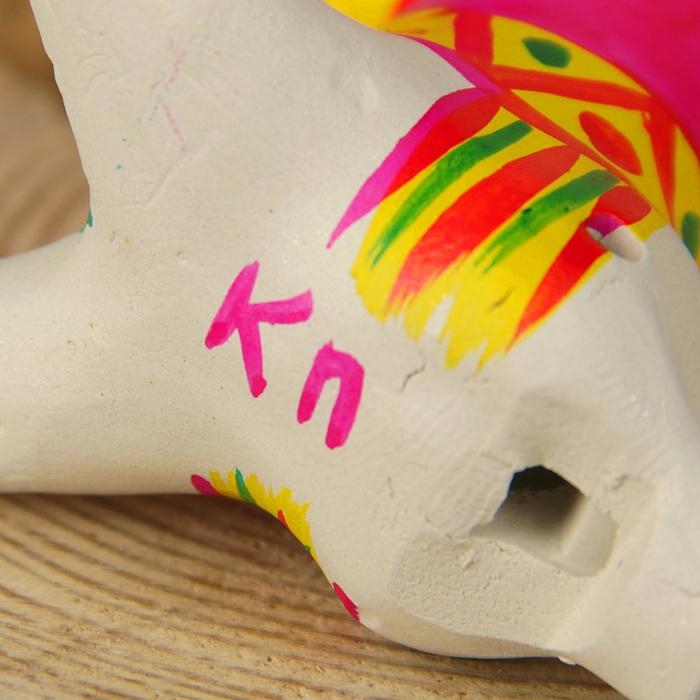 Свою затейливую форму игрушка получает в процессе сушки: глина трескается, а мастер разглаживает неровности. Обожжённый материал белеет и не требует дополнительной грунтовки. В росписи мастера используют три цвета: зелёный, жёлтый и малиновый.