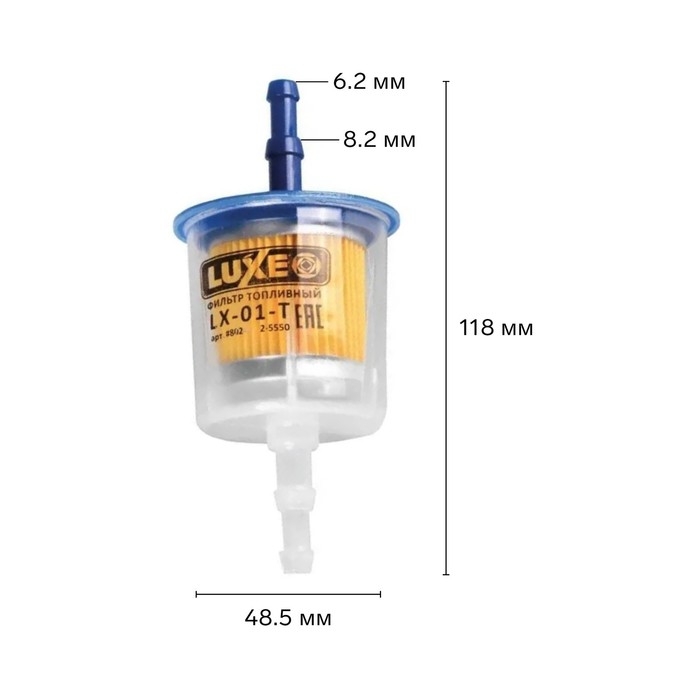 Топливные фильтры LUXE LX-01-T обеспечивают очистку топлива от твердых загрязнений, водяных и парафиновых взвесей, особенно опасных для элементов топливной системы и двигателя. Степень очистки топлива от механических примесей составляет до 15 микрон в зависимости от типа двигателя. Способны к сепарации и задержке воды. Герметичность конструкции фильтров не допускает утечки топлива, предупреждая опасность воспламенения двигателя и загрязнения окружающей среды. Технологические особенности производства обеспечивают большой запас надёжности фильтра даже при экстремальных сменах температур, а низкое гидродинамическое сопротивление позволяет не ограничивать подачу топлива в камеру сгорания.