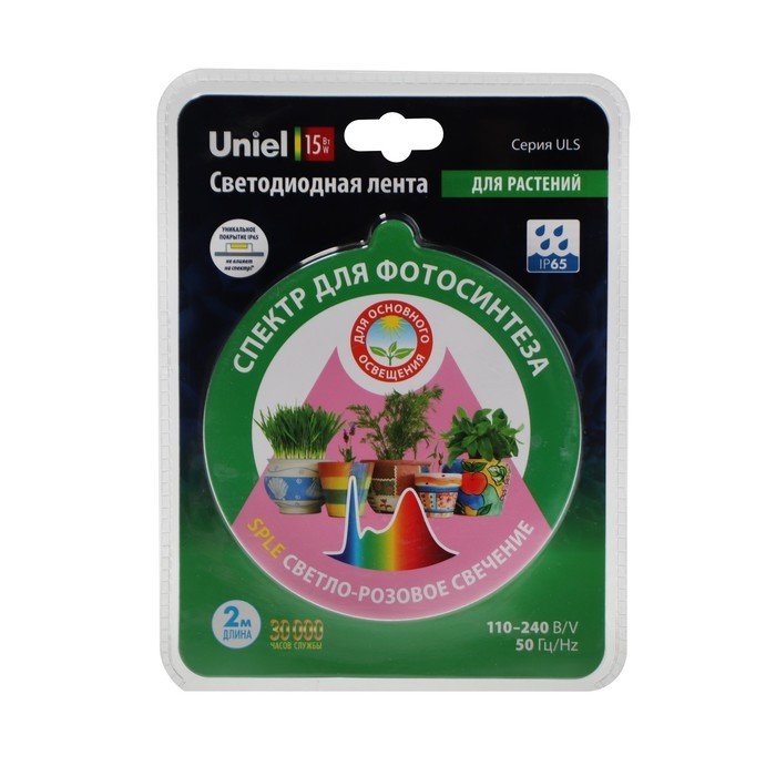 Фитолента светодиодная Uniel, 12 В, SMD2835, 2 м, IP65, 18 Вт/м, 42LED/м, для фотосинтеза