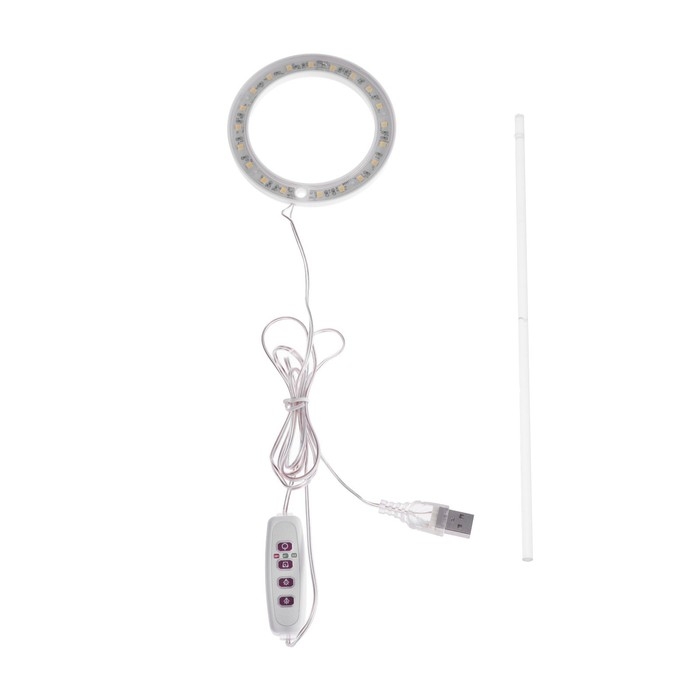 Фитосветильник светодиодный, 2 Вт, 5 В, в горшок, USB, полноспектральный, 1 круг