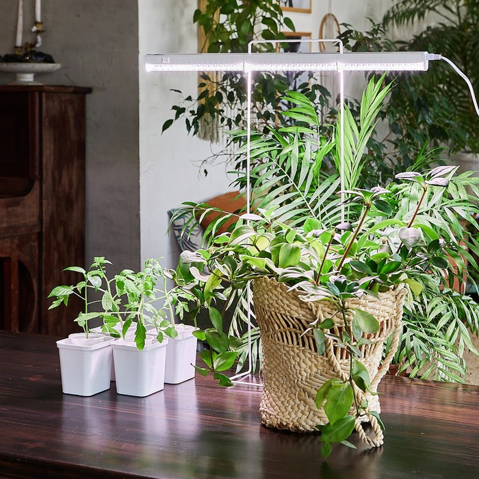 Линейные светильники подойдут для дополнительного освещения контейнеров и длинных ящиков. Равномерное распределение света, простота использования и освещение большого пространства делают их незаменимыми на стеллажах, подоконниках и в теплицах.