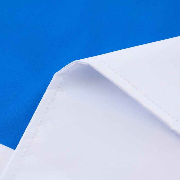 Флаг изготовлен из легкой, прочной, долговечной ткани - полиэфирной ткани Дюспо 240Т WR PU. Дюспо - мягкая и приятная на ощупь ткань, практически не шуршит и не просвечивает. Плотность 1 слоя флага 85 гр/м2, за счёт этого флаг износоустойчивый, изображение насыщенное и яркое. Флаг имеет покрытие PU milky и дополнительно пропитан WR - это усиленная водоотталкивающая пропитка, механика которой проста, но эффективна: вода просто собирается в капли и скатывается по поверхности, сохраняя при этом и воздухонепроницаемость изделия. Знамена можно использовать в закрытых помещениях и на улице, очень красиво ткань струится на ветру.