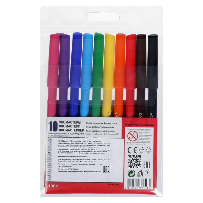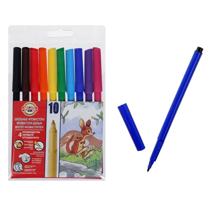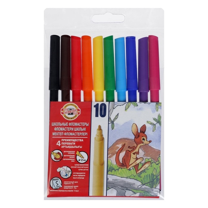 Фломастеры 10 цветов Koh-I-Noor "Звери", трёхгранные