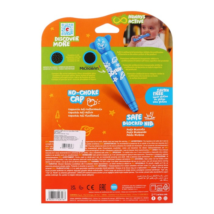 Фломастеры 12 цветов CARIOCA "Baby", суперсмываемые, для малышей, фигурный колпачок