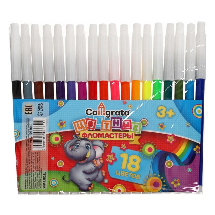 Набор фломастеров содержит 18 ярких и насыщенных цветов, невентелируемый колпачок. Идеально подходят для детей от 3-х лет и для тех, кто только начинает свой творческий путь. Фломастеры состоят из пластика, чернил. Упаковка представлена в виде PVC пакета. Благодаря фломастерам Вы сможете воплотить все свои творческие фантазии в реальность.