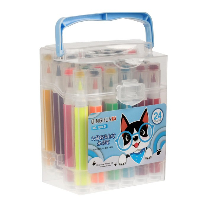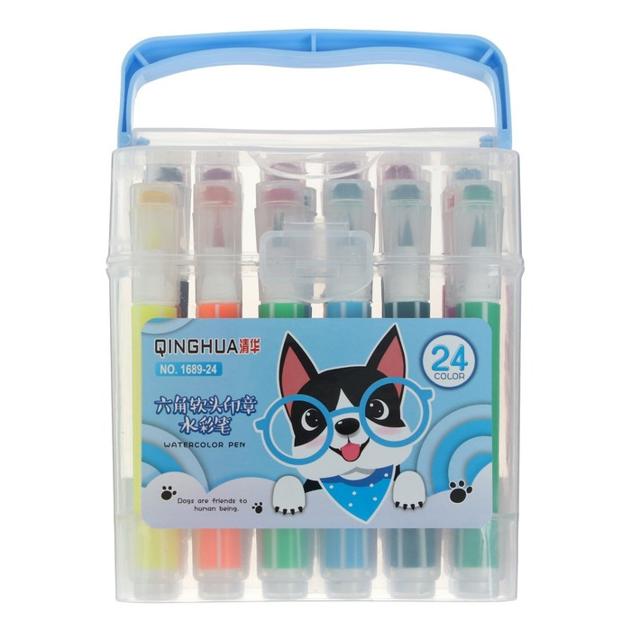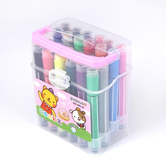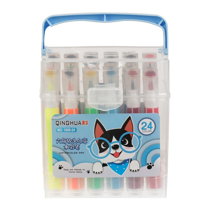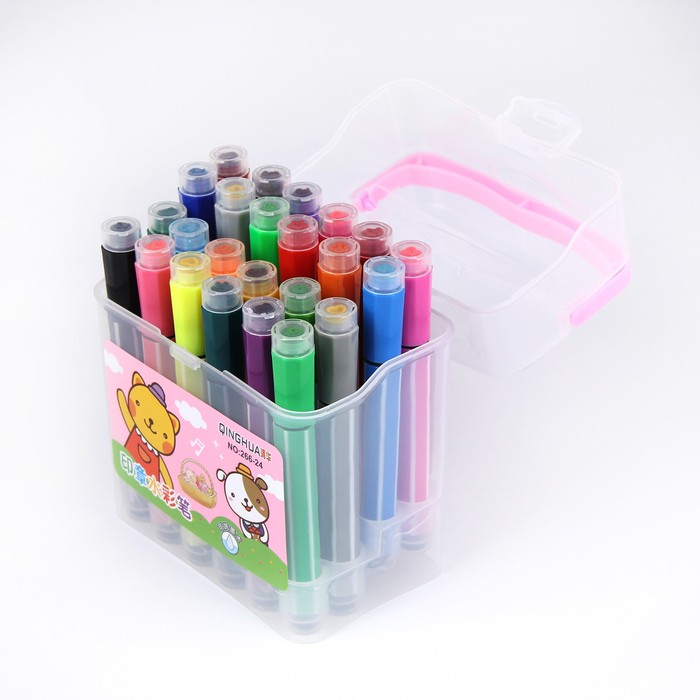 Фломастеры 24 цветов, толстые, с печатью, вентилируемый колпачок, МИКС