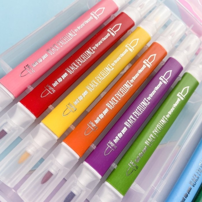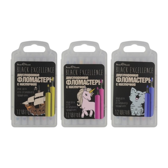Фломастеры-кисточки 12 цветов BLACK EXCELLENCE, в пластиковом пенале, МИКС