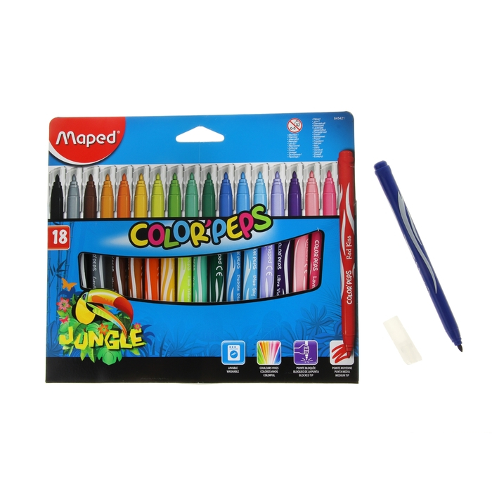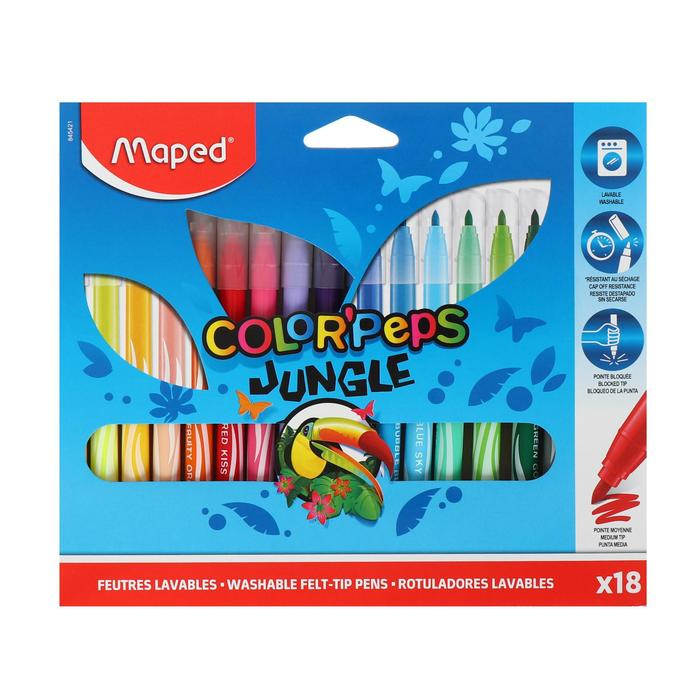Фломастеры утолщенные, 18 цветов JUNGLE, смываемые, картонная упаковка