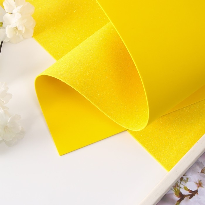 Фоамиран глиттерный 2 мм, 50х50 см, лимонный