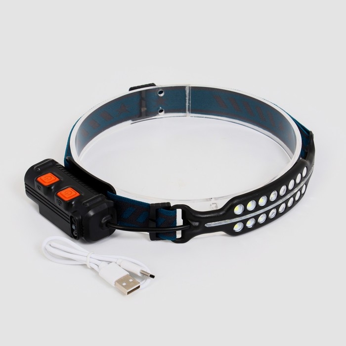 Фонарь налобный аккумуляторный, 15 Вт, 2000 мАч, COB, XPE, 6 режимов, индикатор заряда