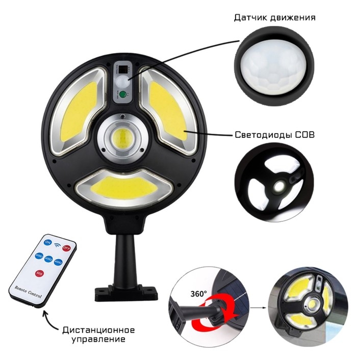 Садовый светильник на солнечной батарее с датчиком движения, накладной, 9.5 × 13 × 5 см, 49 LED, свечение белое