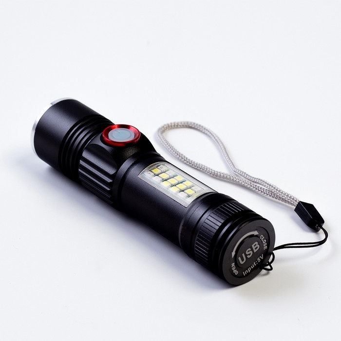 Фонарь ручной аккумуляторный, 10 Вт, 2200 мАч, P60, IPX45, zoom, 5 режимов, индикатор заряда