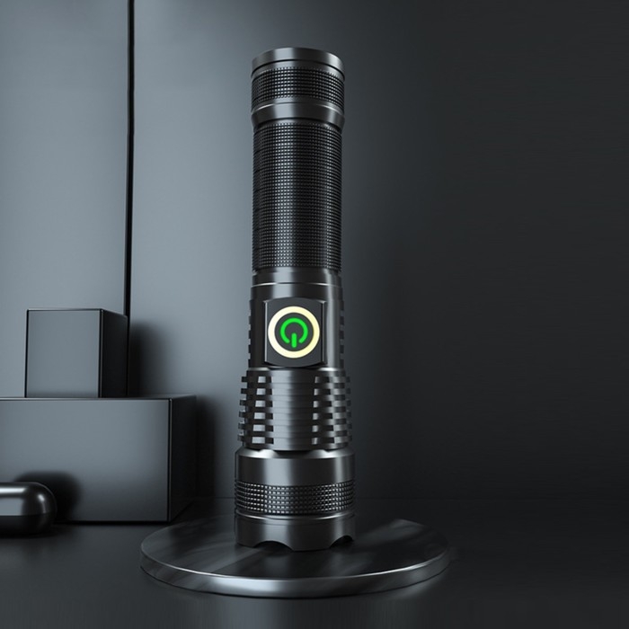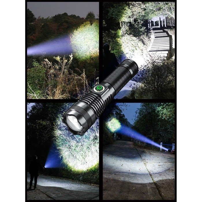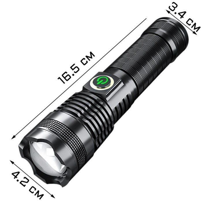 Фонарь ручной аккумуляторный 6000 мАч, 1500 лм, 500 м, XHP70, 3 режима,micro USB, zoom, 24.8 x 6 x 3