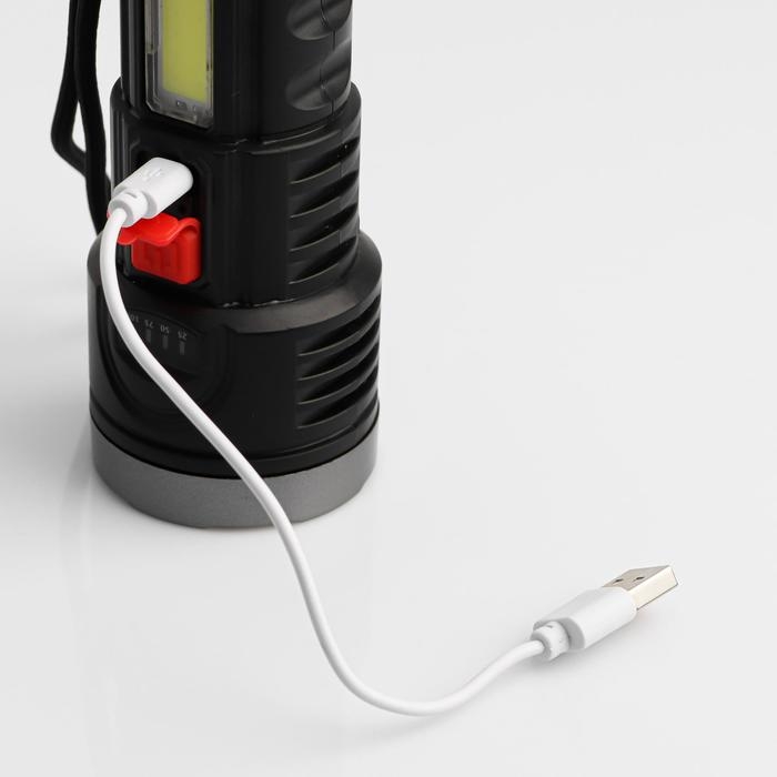 Фонарь ручной аккумуляторный, 3 Вт+3 Вт, 1200 мАч, COB, индикатор заряда