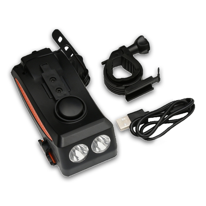 Фонарь велосипедный передний аккумуляторный, водонепроницаемый, 3 режима, с сигналом