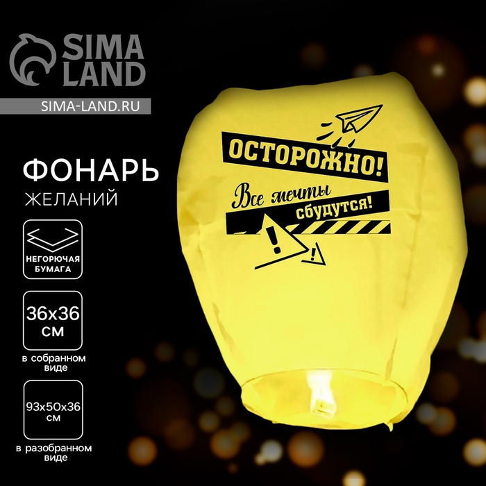 Фонарик желаний «Все мечты сбудутся» купол, жёлтый