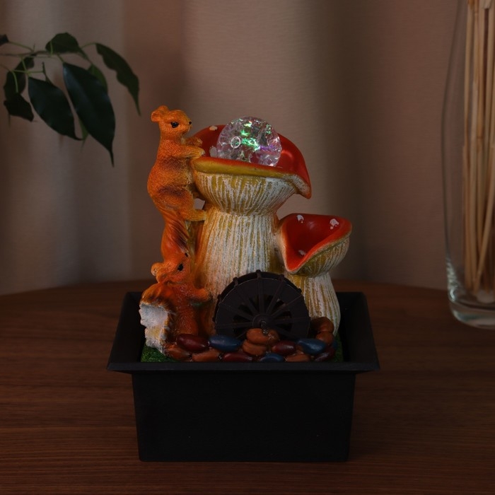 Фонтан "Белочки у мухоморов" 22х16 см (с подсветкой)