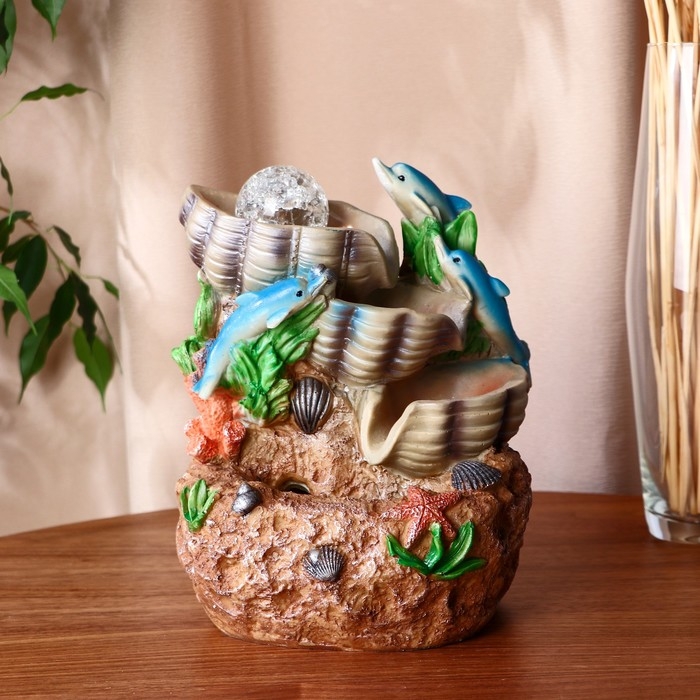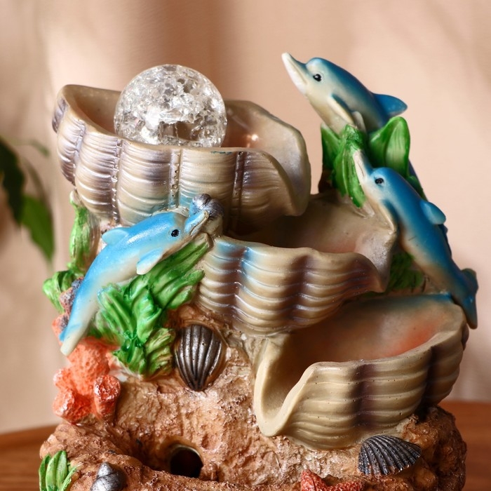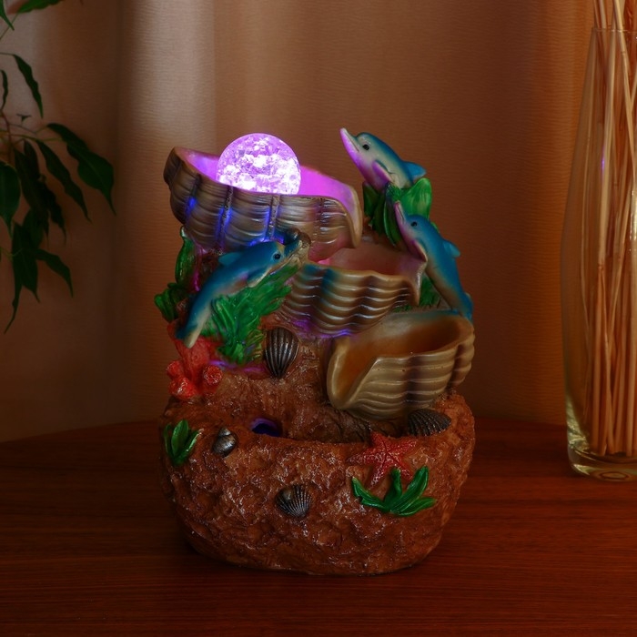 Фонтан "Дельфины" ракушки-кадки, 11х16х24 см (с подсветкой)