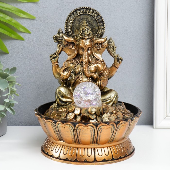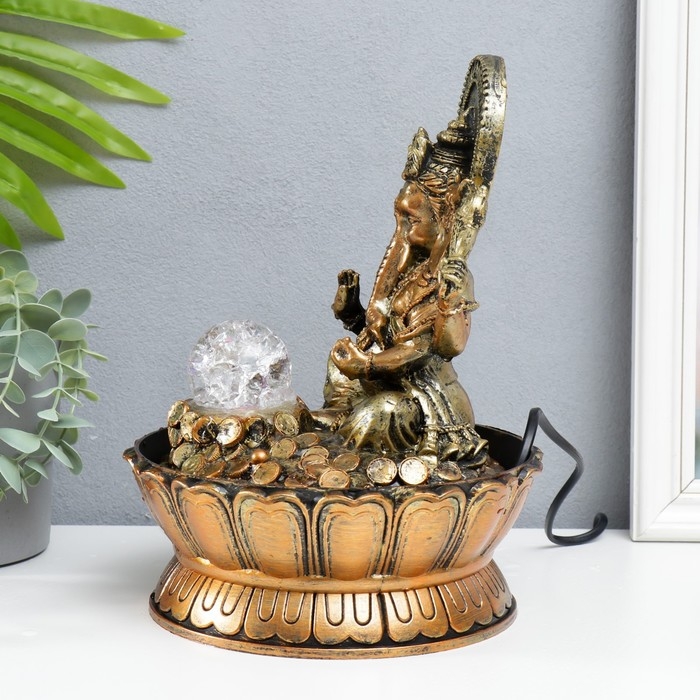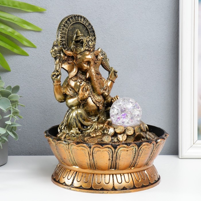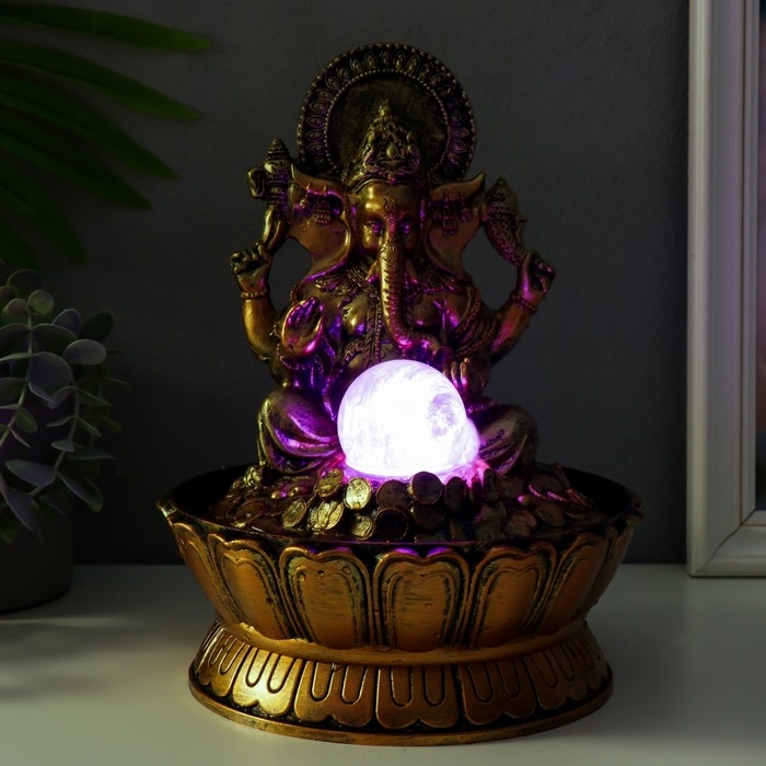 Фонтан настольный от сети, подсветка "Золотой Ганеша у каменного фонтана" 20,5х20,5х26 см