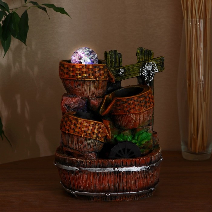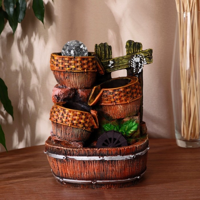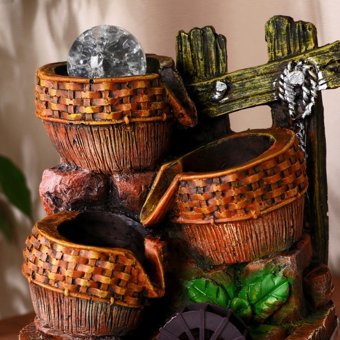 Фонтан "Кадки с плетением у мельницы" 17х14х26 см (с подсветкой)