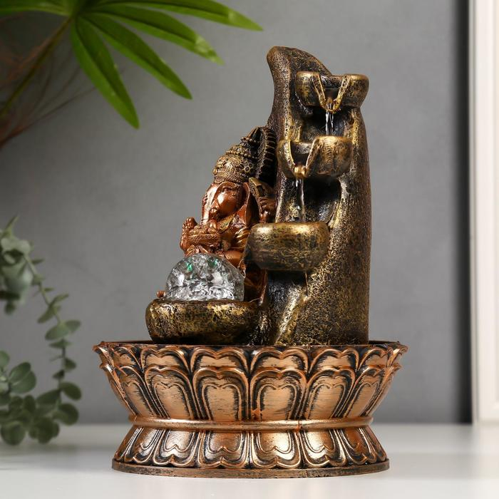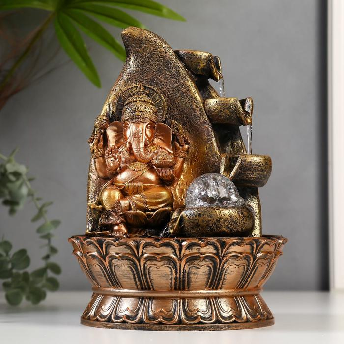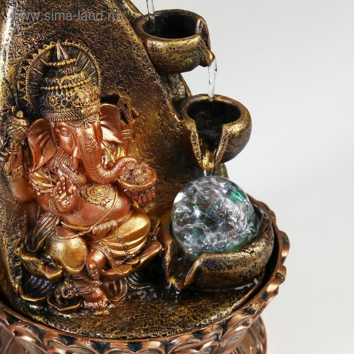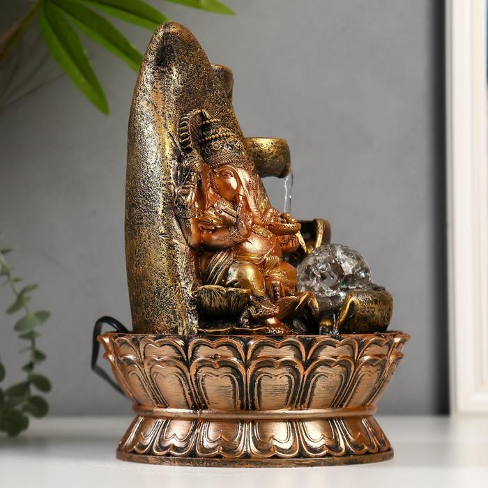 Фонтан настольный от сети, подсветка "Ганеша у скалы" 28х20х20 см