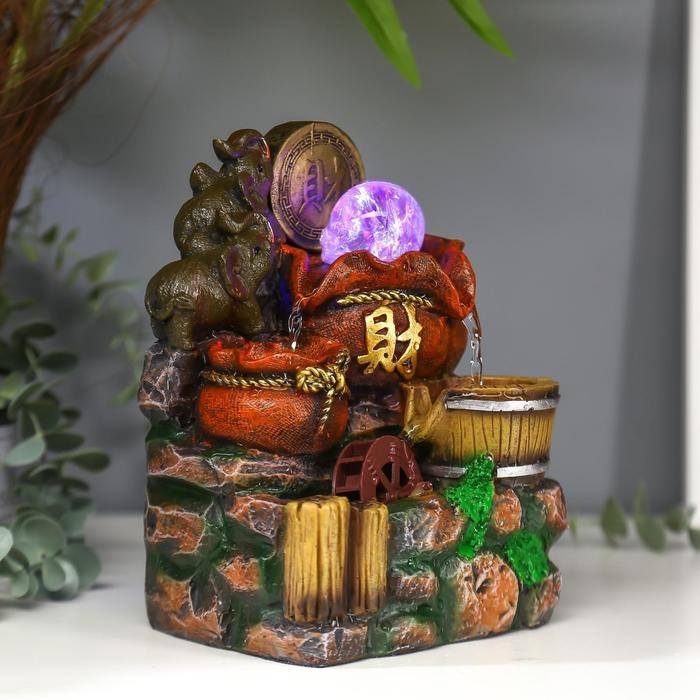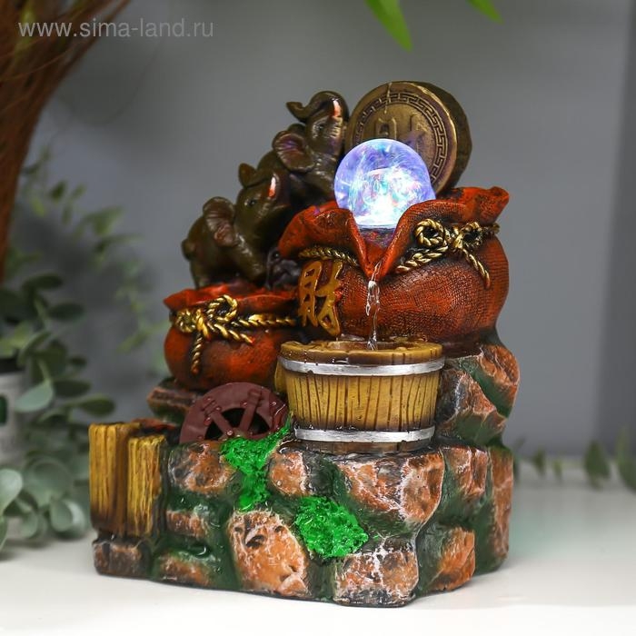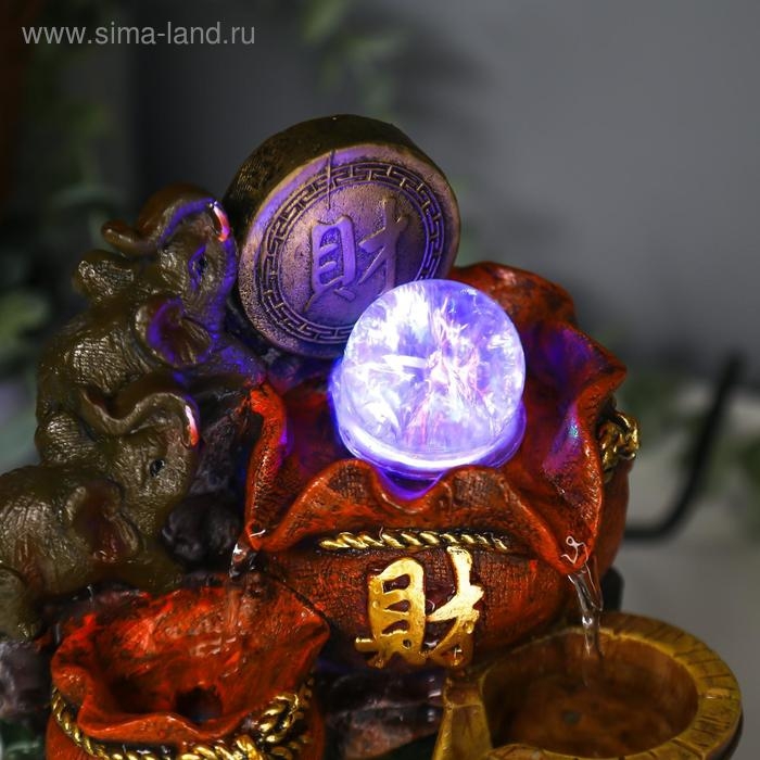 Фонтан настольный от сети, подсветка "Слоны и китайская монета" 20,5х14х11 см