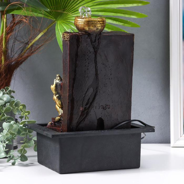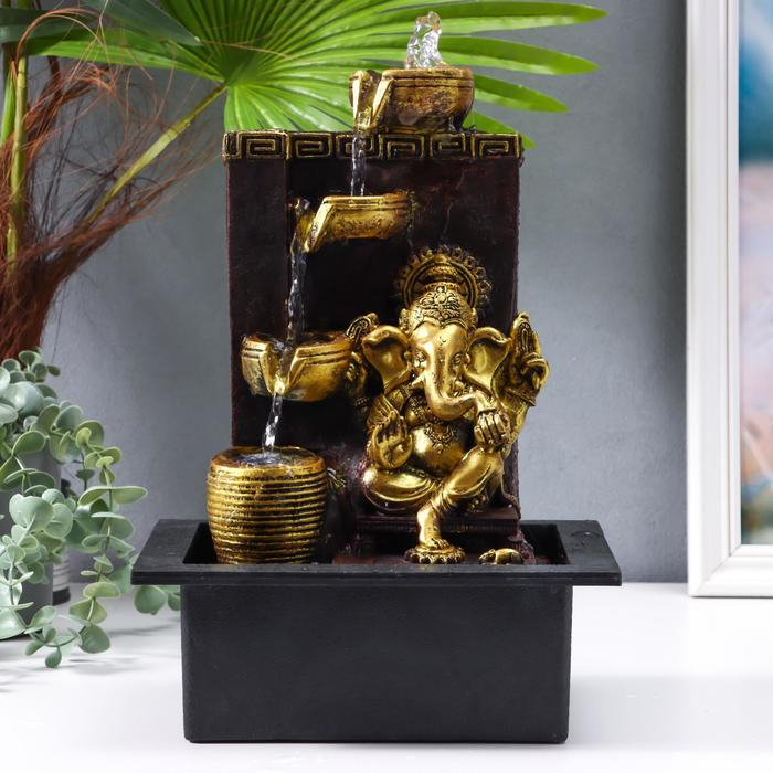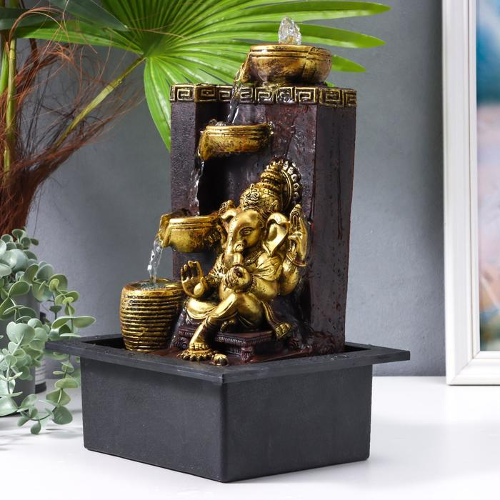 Фонтан настольный от сети "Золотой ганеша у водопада, греческий узор" 35х20х25 см
