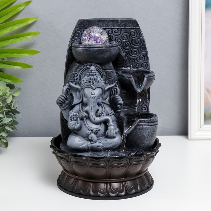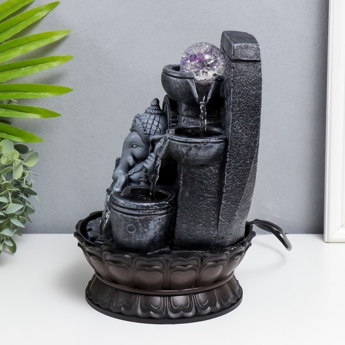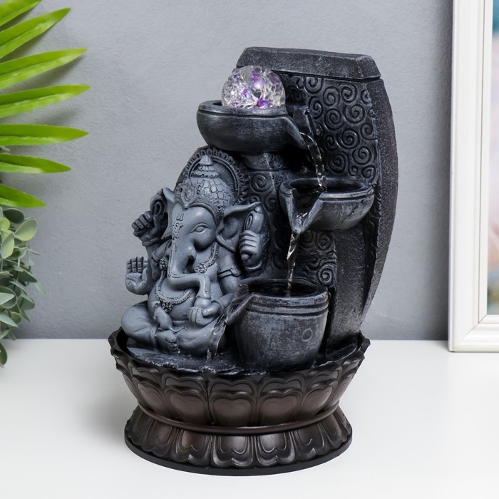Фонтан настольный с подсветкой "Ганеша - Благословение" серый 31х20х20 см