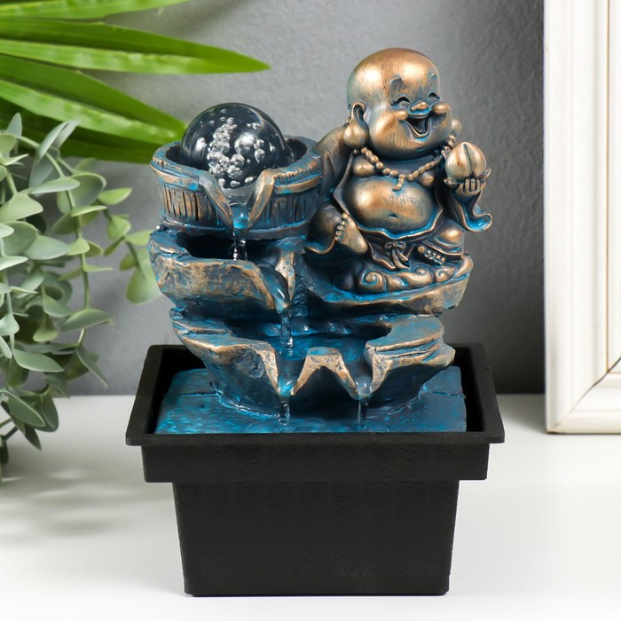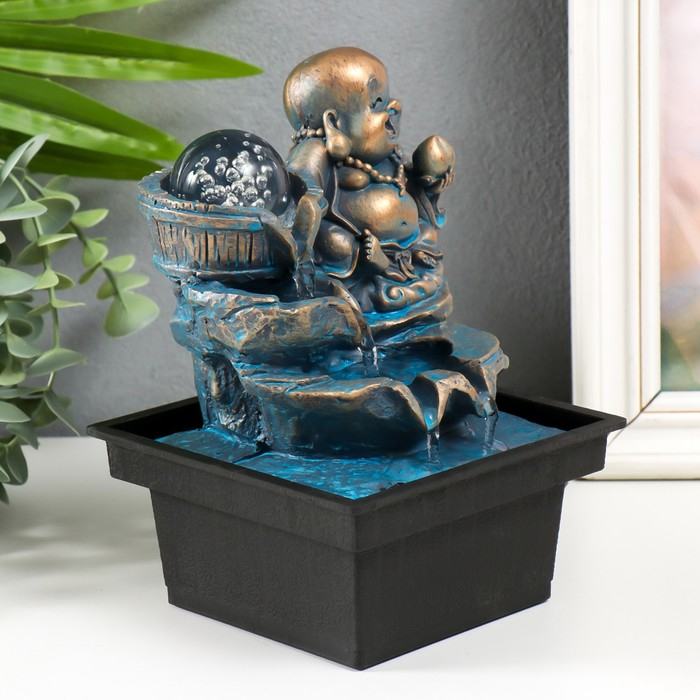 Фонтан "Счастливый хотей с персиком" зелено-бронзовый 19,5х13,5х10 см