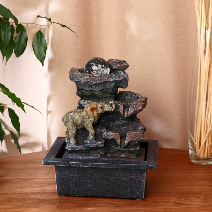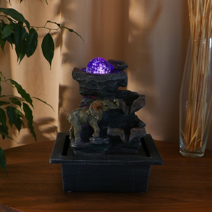 Фонтан "Слоник на скале" 16х20х26 см (с подсветкой)