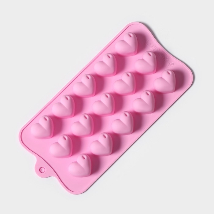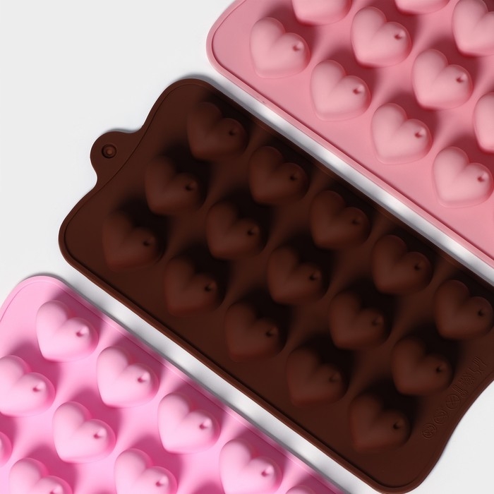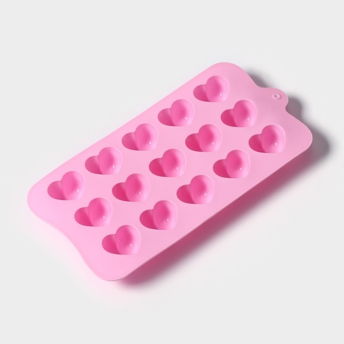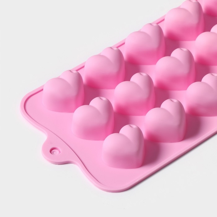 Форма для конфет и шоколада Доляна «Сердечки», силикон, 19,5×10×1,8 см, 15 ячеек (2,7×2,3 см), цвет МИКС