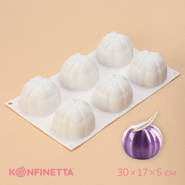 Форма для муссовых десертов и выпечки Доляна «Кристалл», 29,5×17×3,5 см, 6 ячеек (d=6,5 см), цвет белый