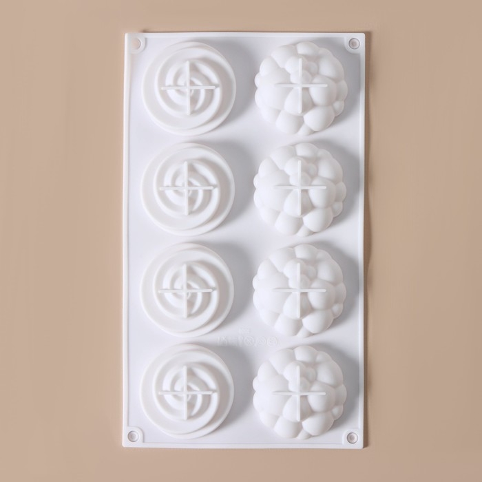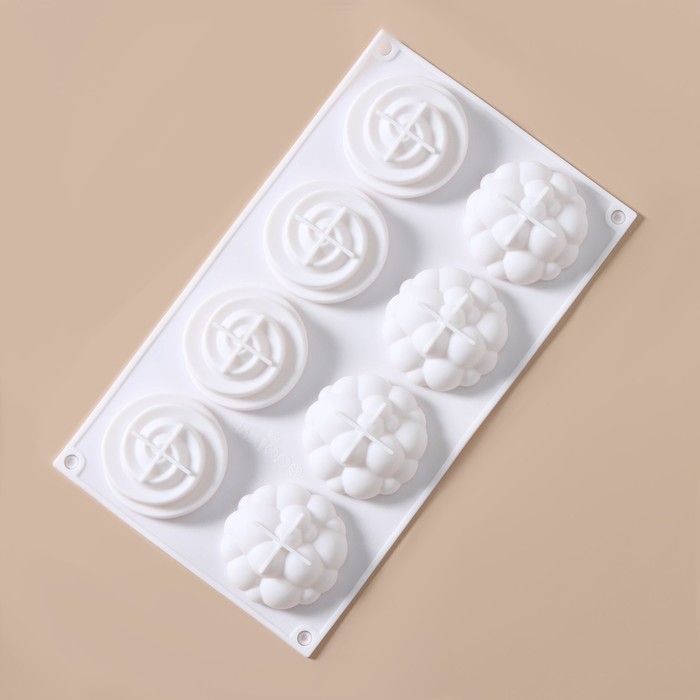 Форма для муссовых десертов и выпечки KONFINETTA «Карамелла», силикон, 29,5×17,2×2,5 см, 8 ячеек (d=6,5 см), цвет белый
