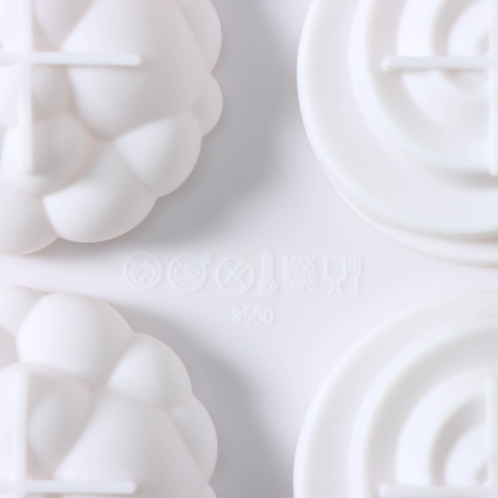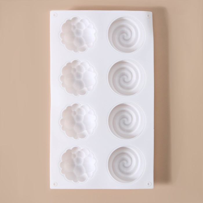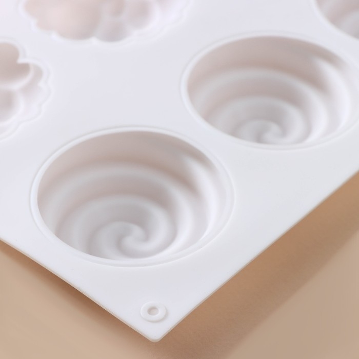 Форма для муссовых десертов и выпечки Доляна «Гипноз», силикон, 30×17,5×0,5 см, 6 ячеек (d=7,7 см), цвет белый
