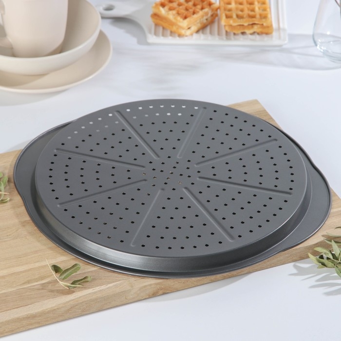 Форма для пиццы перфорированная Доляна, d=35,5 см, антипригарное покрытие