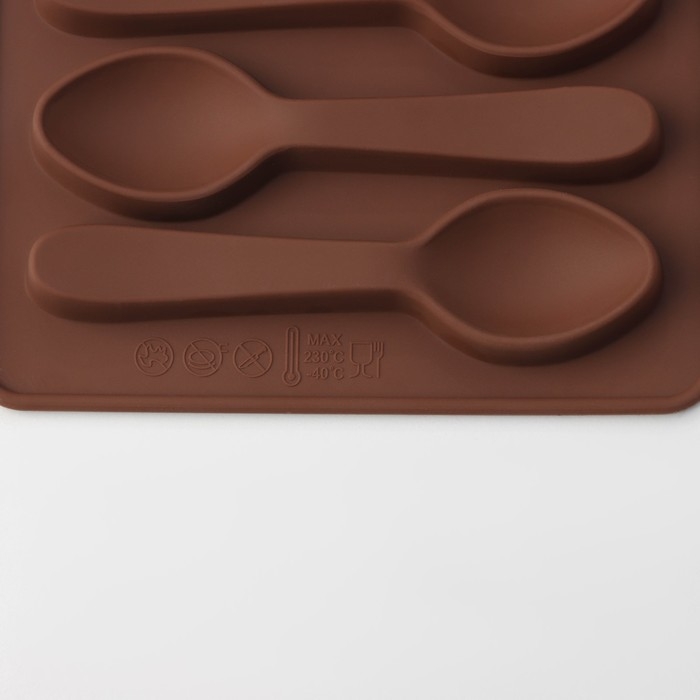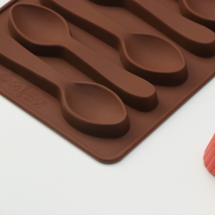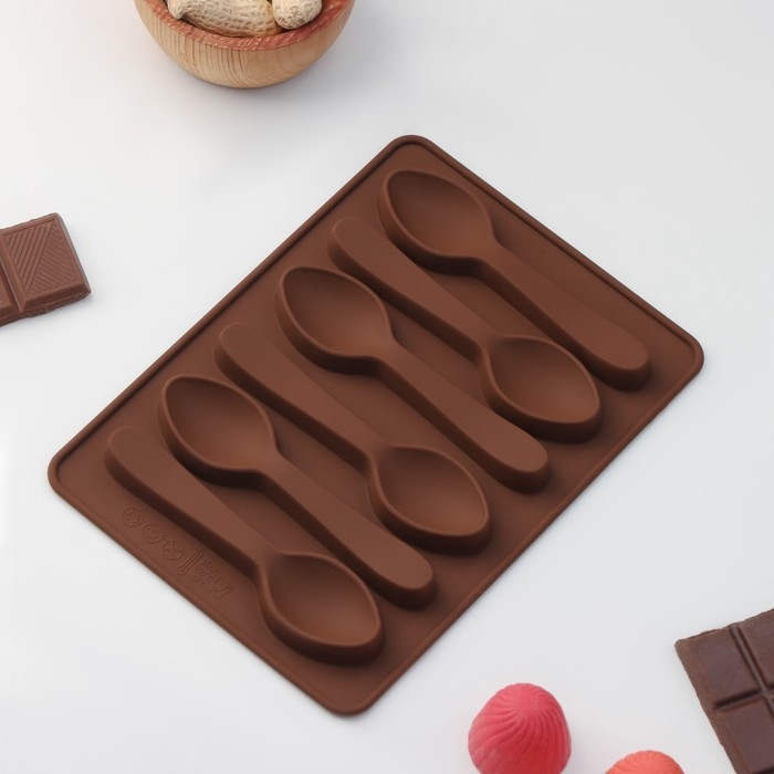 Форма для шоколада Доляна «Ложечки», силикон, 18×12×1,2 см, 6 ячеек (9,8×2,3 см), цвет коричневый