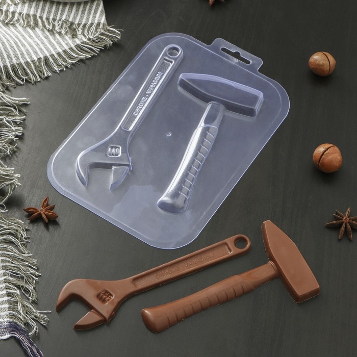 Форма для шоколада и конфет пластиковая «Ключ и молоток», цвет прозрачный