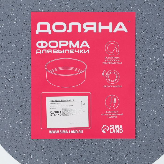 Форма для выпечки Доляна «Элин Мрамор», d=24 см, съёмное дно, антипригарное покрытие, цвет серый