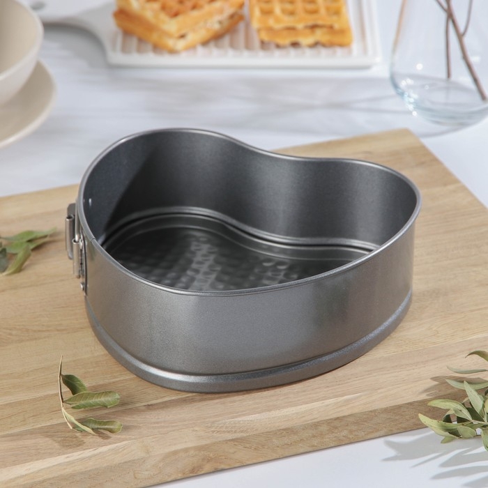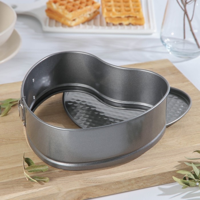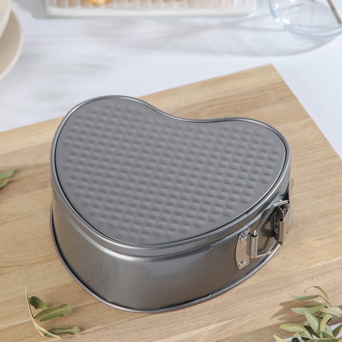 Форма для выпечки Доляна «Элин. Сердце», 19,5×18×7 см, съёмное дно, антипригарное покрытие, цвет серый
