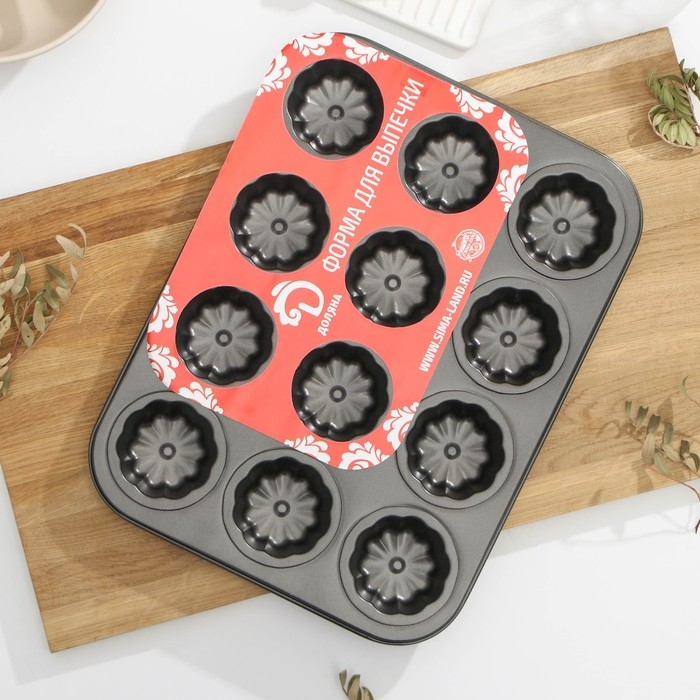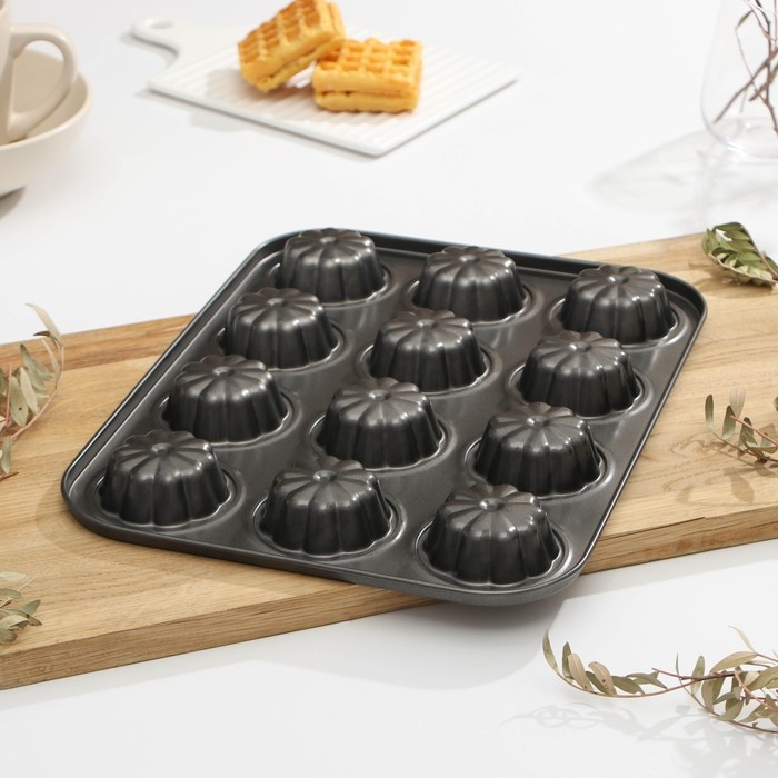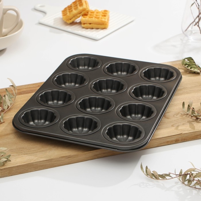 Форма для выпечки Доляна «Неженка», 35×26,5×2,3 см, 12 ячеек, антипригарное покрытие, цвет чёрный